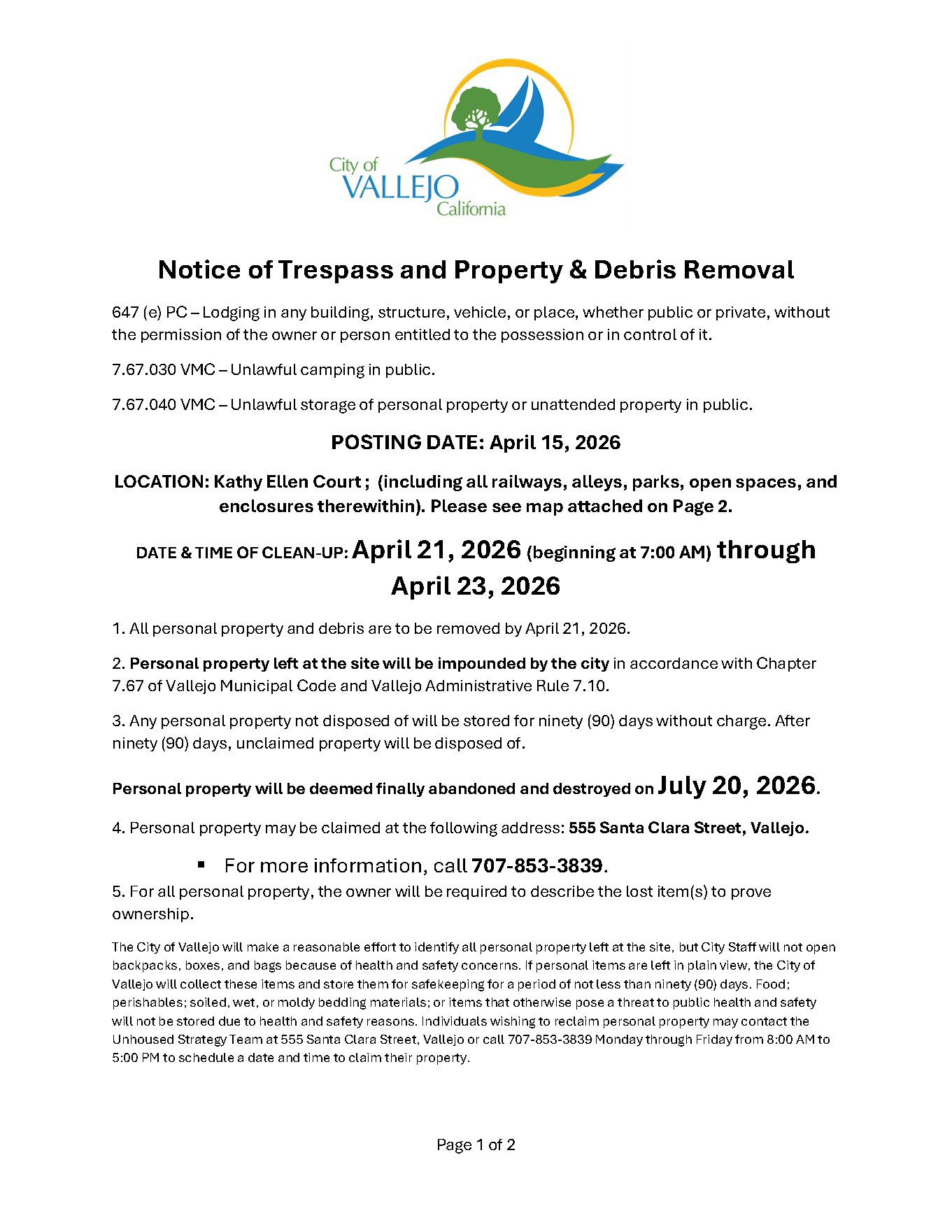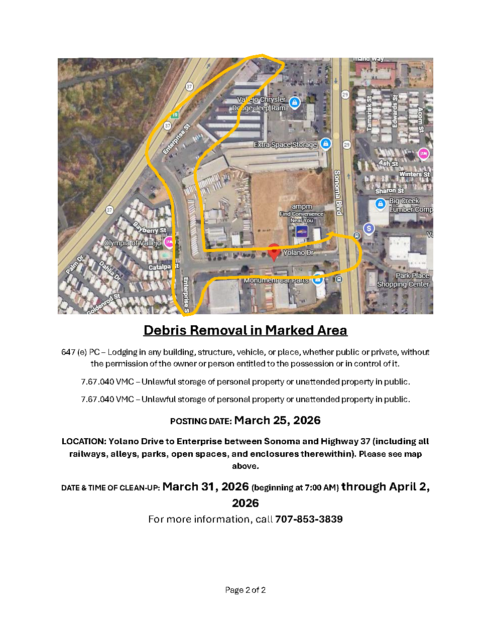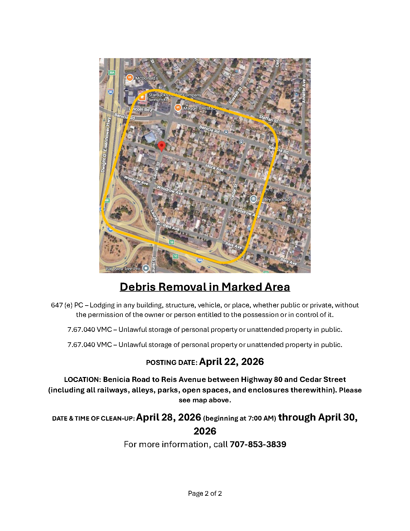Notice of Trespass and Property & Debris Removal- Benicia Rd to Reis