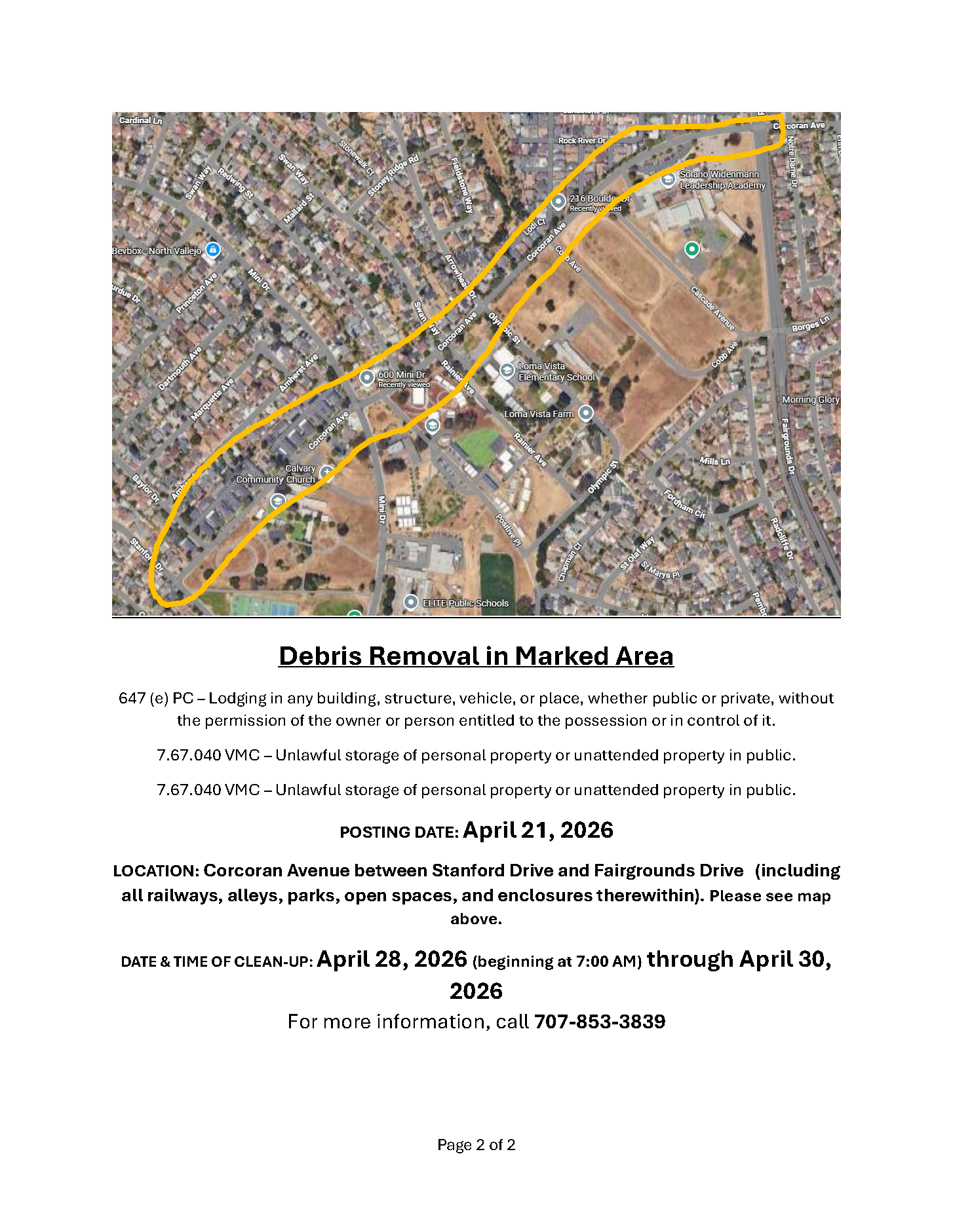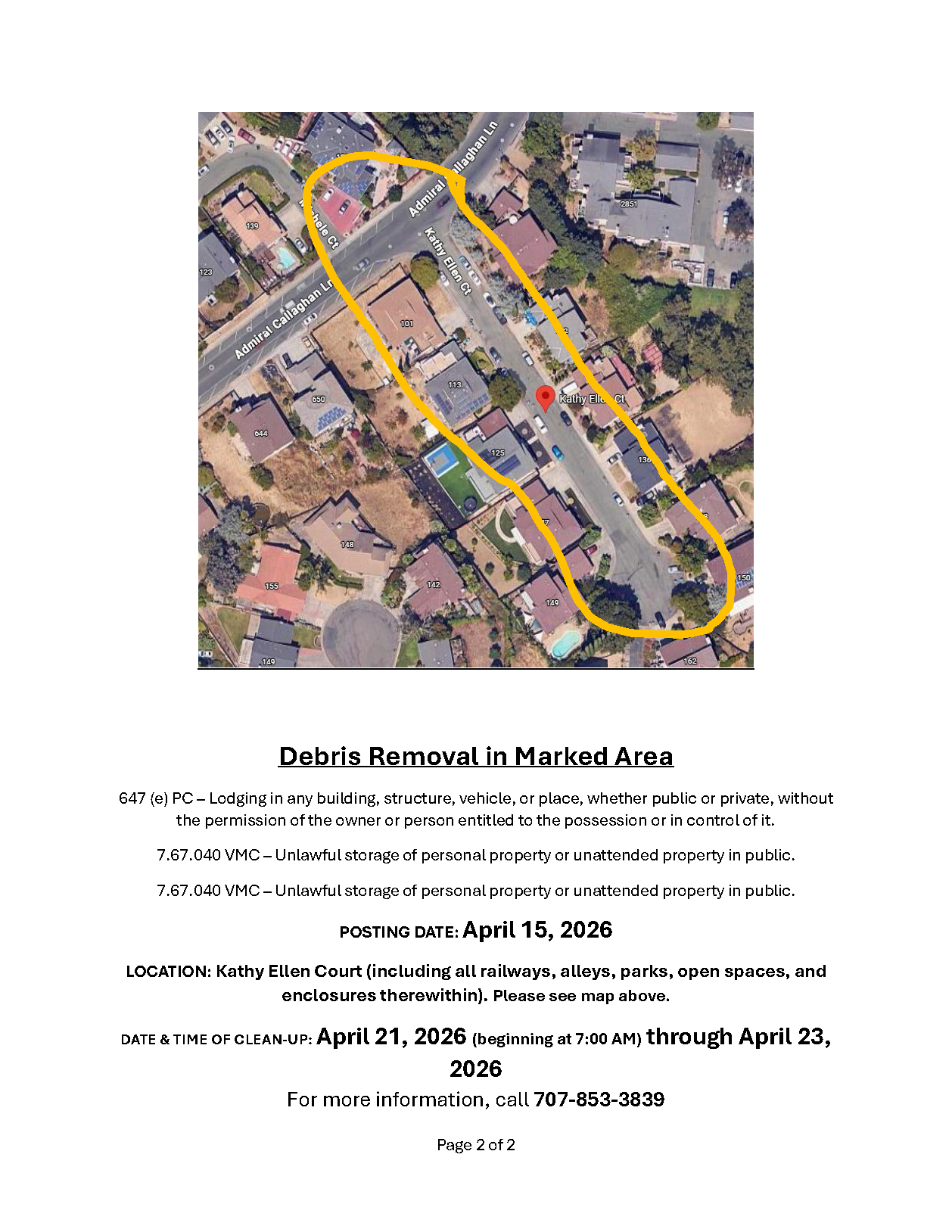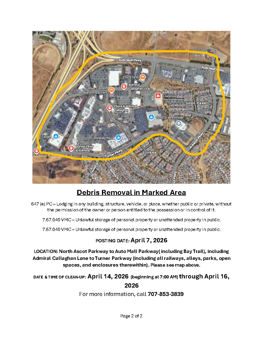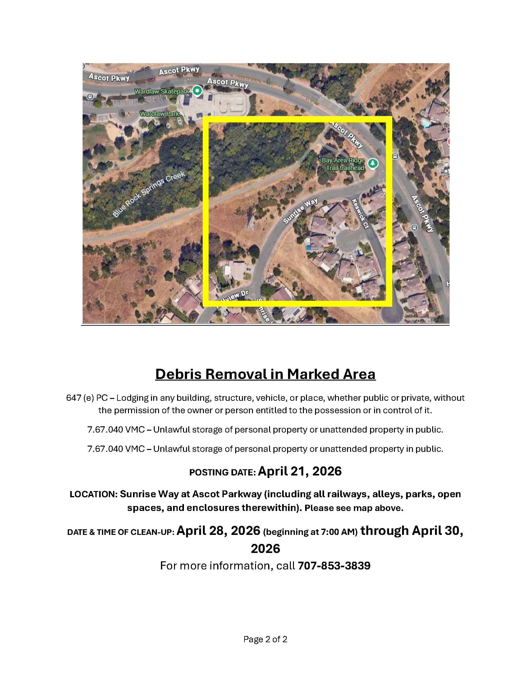 Notice of Trespass and Property & Debris Removal- Benicia Rd to Reis